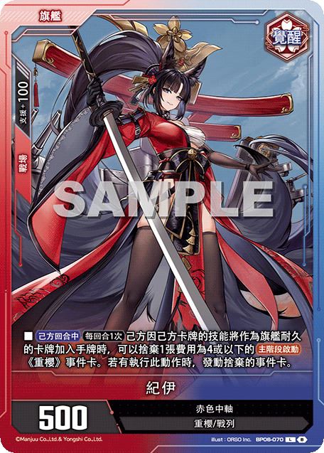 ■【己方回合中】【每回合1次】己方因己方卡牌的技能將作為旗艦耐久的卡牌加入手牌時,可以捨棄1張費用為4或以下的【主階段啟動】《重櫻》事件卡。若有執行此動作時,發動捨棄的事件卡。